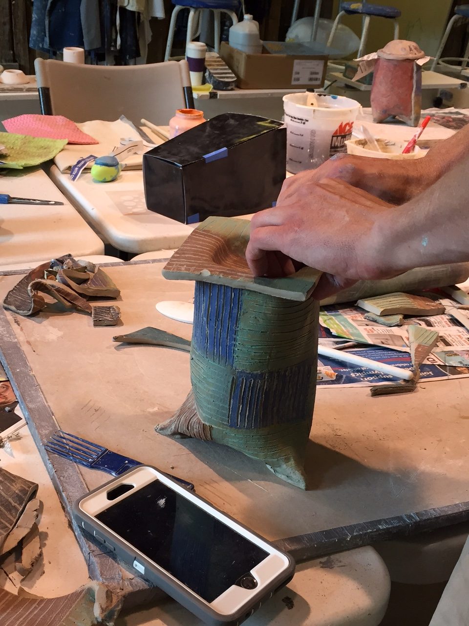 Meaning, intention, and technical skills are the most important components for me when creating work. Whether or not you have previous experience with clay, this class will offer you different techniques to create a wide range of one-of-a-kind items, from lighthearted objects to significant sculptures. We will focus on slab construction, expressive figures, or build functional work. We will also apply other hand-building methods to assemble and decorate your shapes. Let’s create unique dishes, table sets, or figures that contain relevance to you. Have fun creating in a casual and inspiring environment. Class fee includes clay, all firing, and studio glazes.